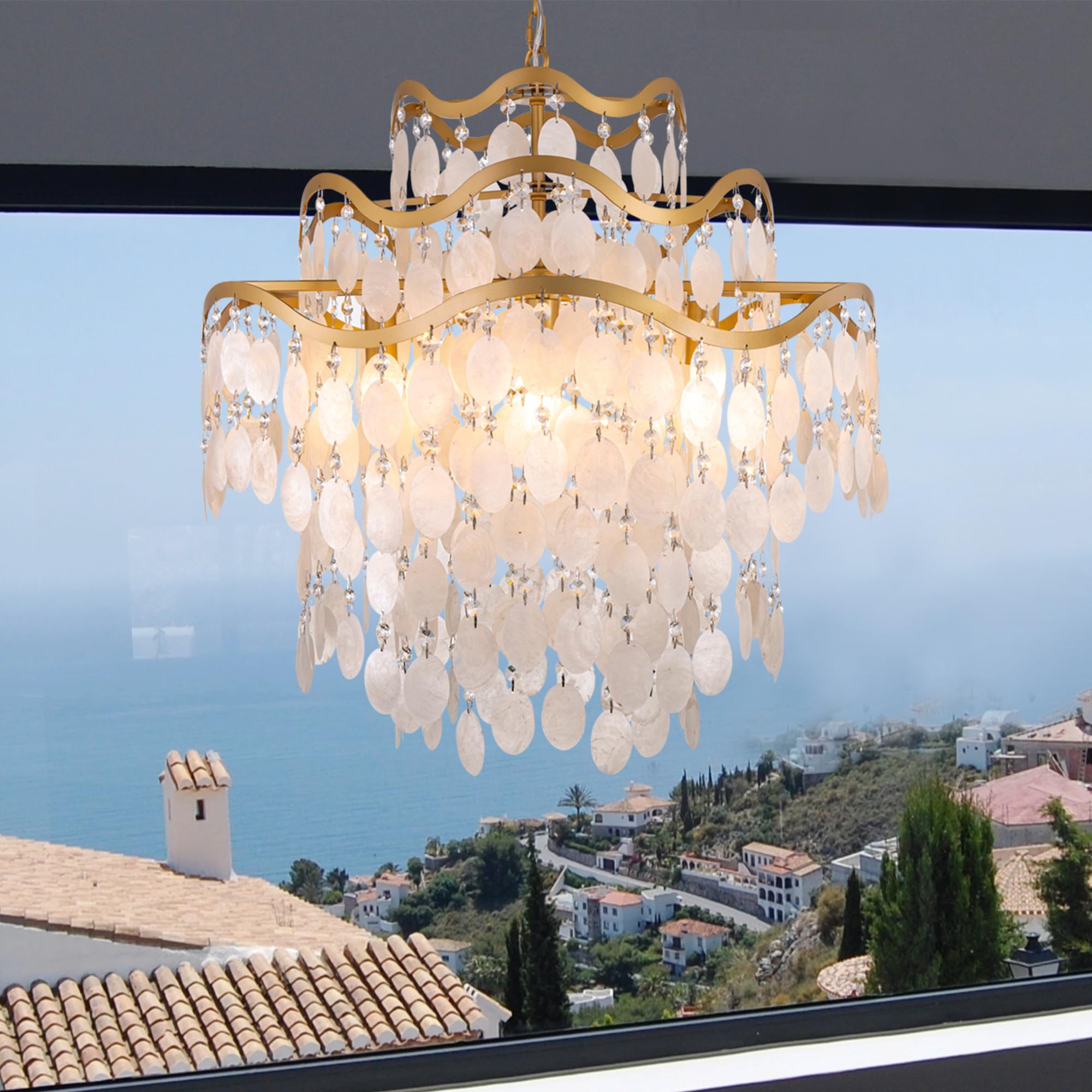 TOCHIC Capiz Shell Chandelier, 9 Lights Coastal Chandelier Light ...