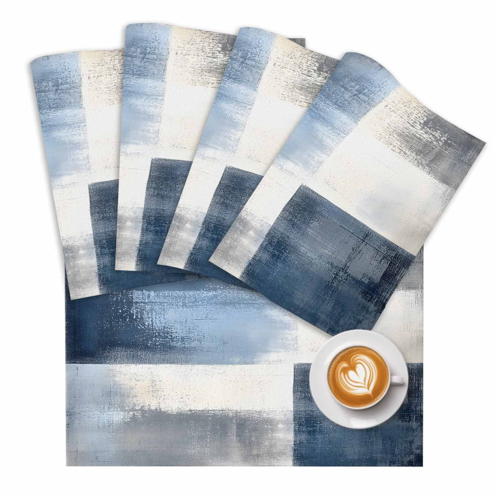 Abstract Art Placemats Set of 2 Color Block Gary Blue Collage Oil ...