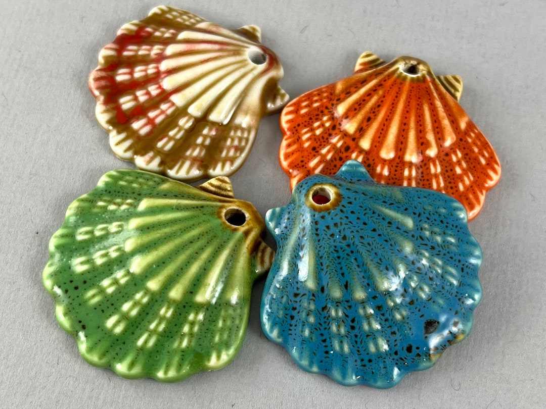 New COLORS! Large Ceramic Shell Pendant, Clam, Blue, Green, Top Drilled ...