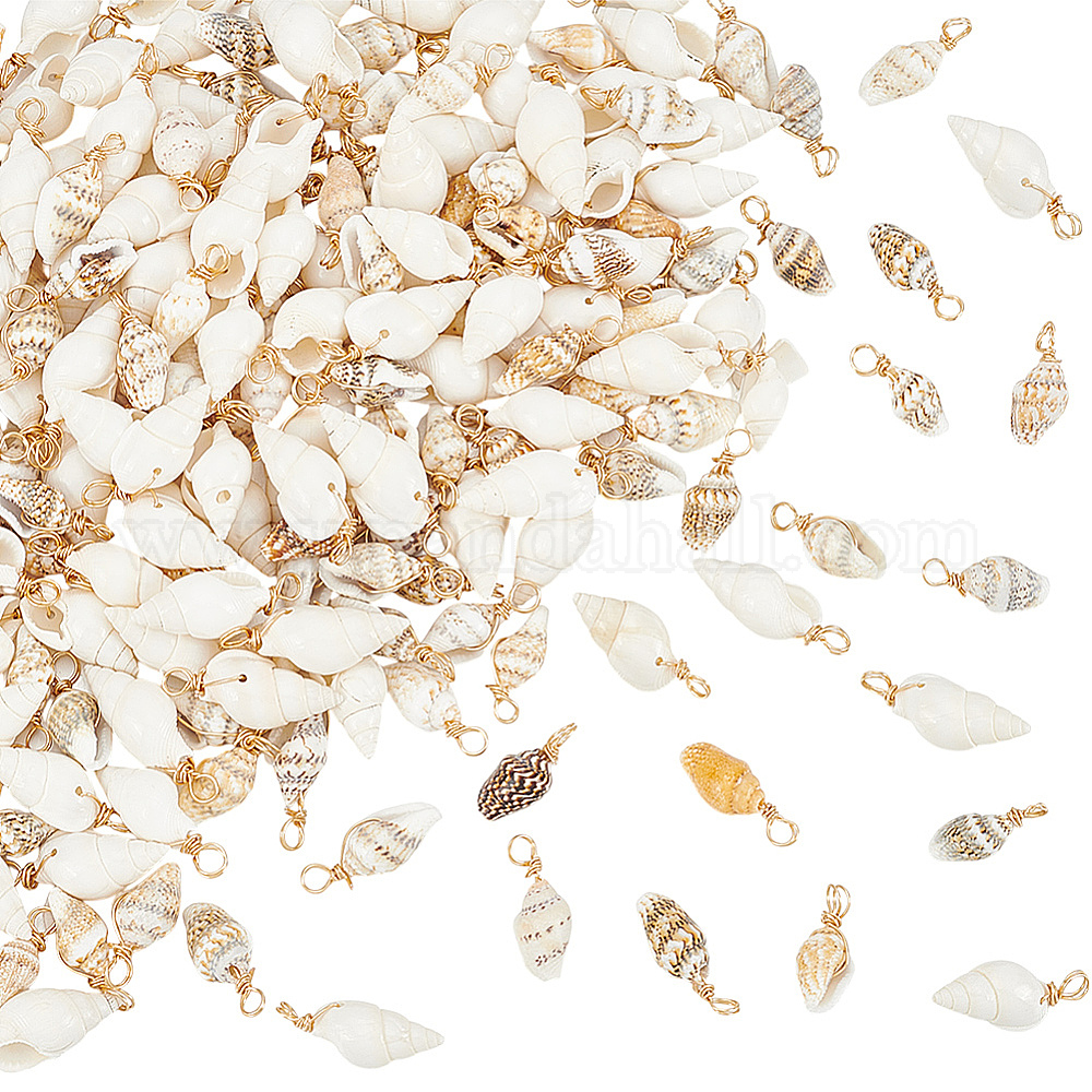 100pcs Shell Pendants Spiral Seashells Craft Charms Cowrie Sea Shells ...