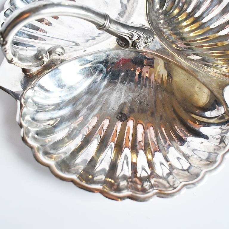 discount stores Vintage Silver shell candy dish 3 part serving tray ...