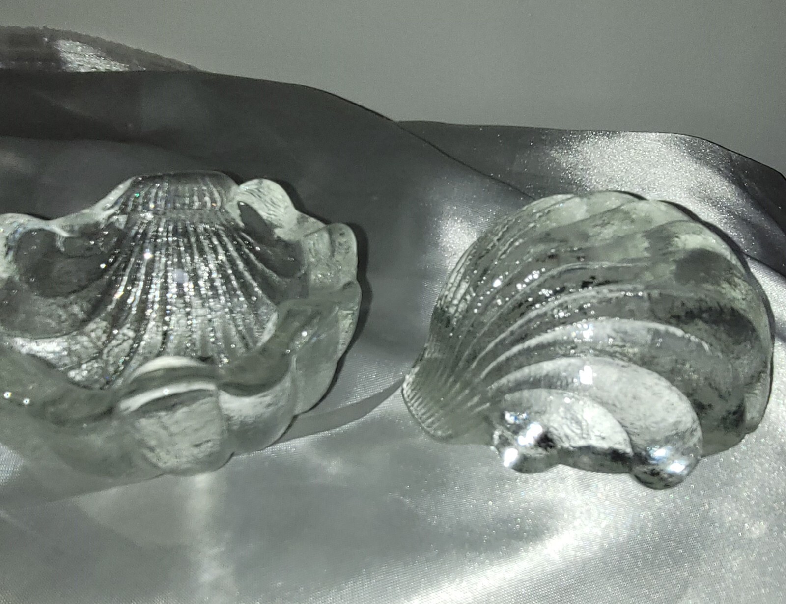 Set of 2 Vintage Clear Sea Shell Glass Condiment Dishes Excellent Shape ...