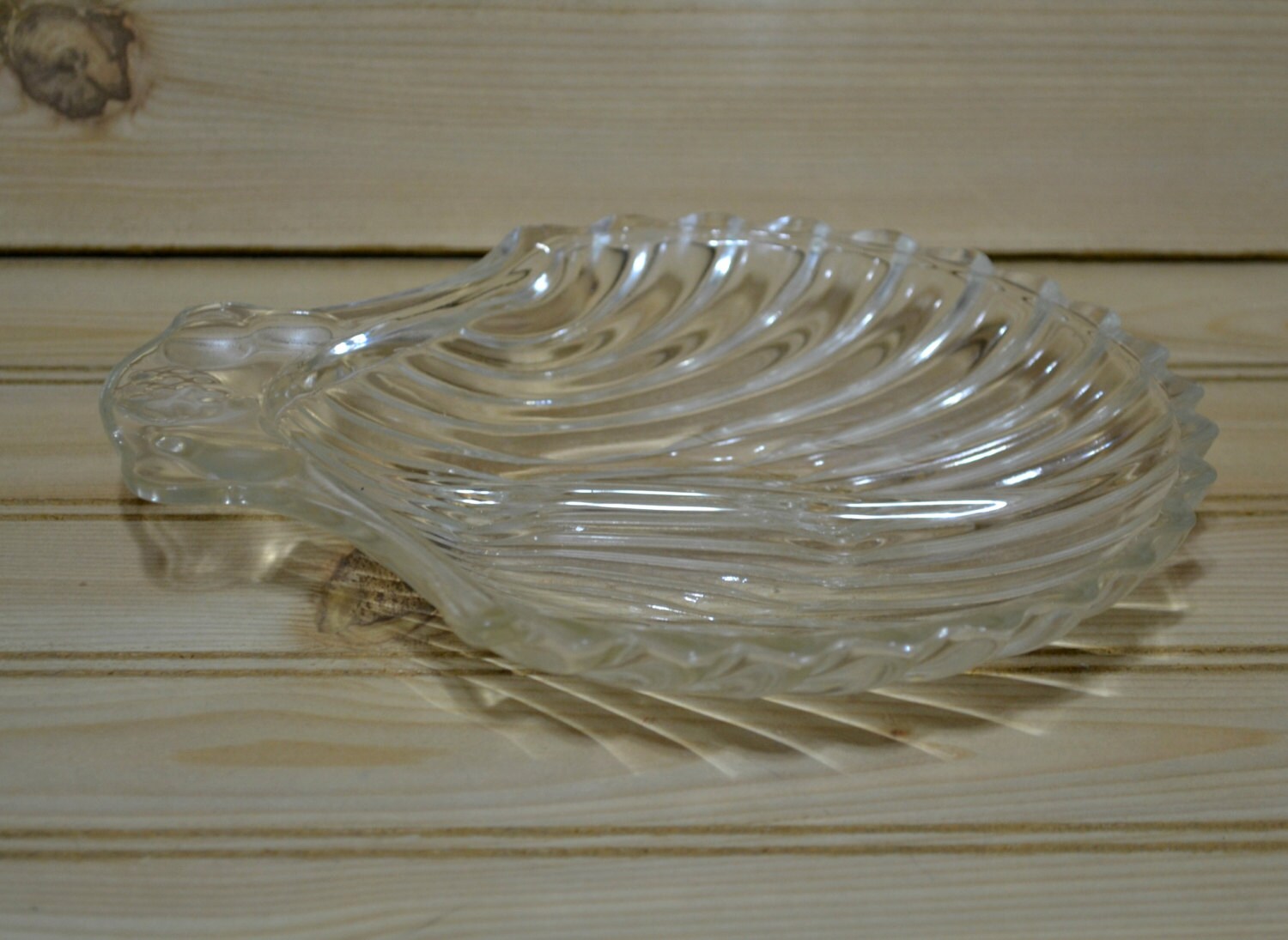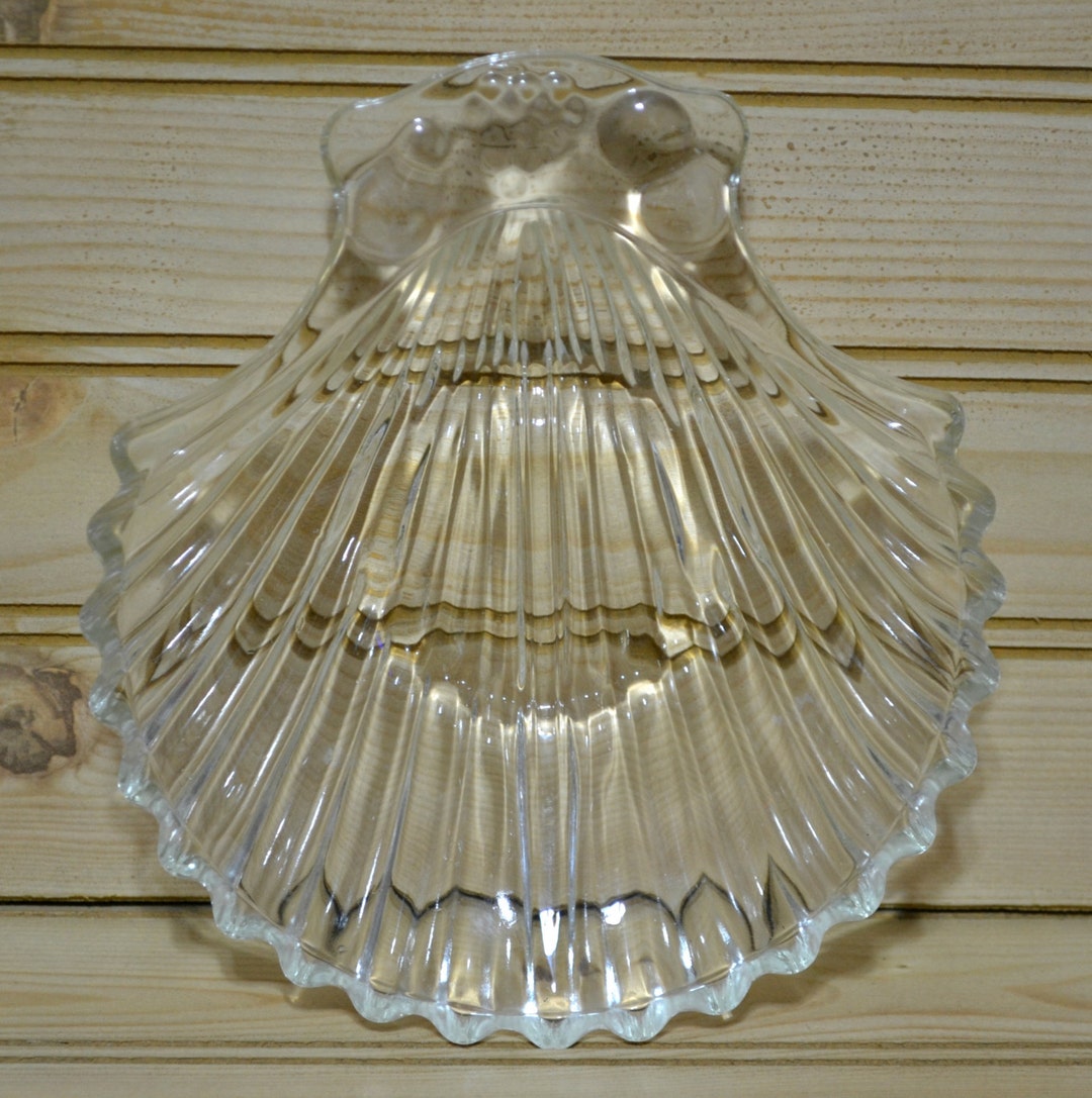 Vintage Clam Shell Divided Relish Condiment Trinket Candy Dish Clear ...