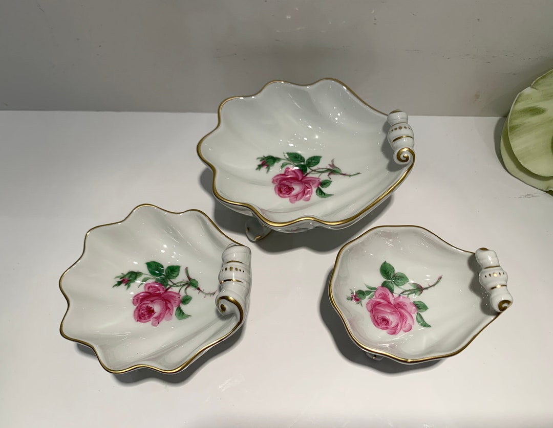 1800s MEISSEN Stacking Condiment Dishes Blue Crossed Swords Shell Shape ...