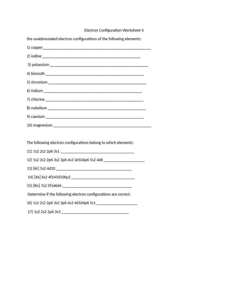 Worksheet electron configurations – Artofit