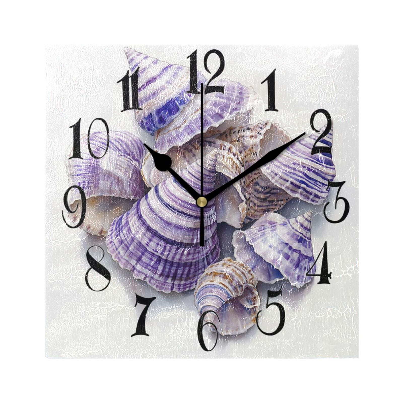 Stripe Shells Purple Wall Clock Decorative Square Silent Non-Ticking ...