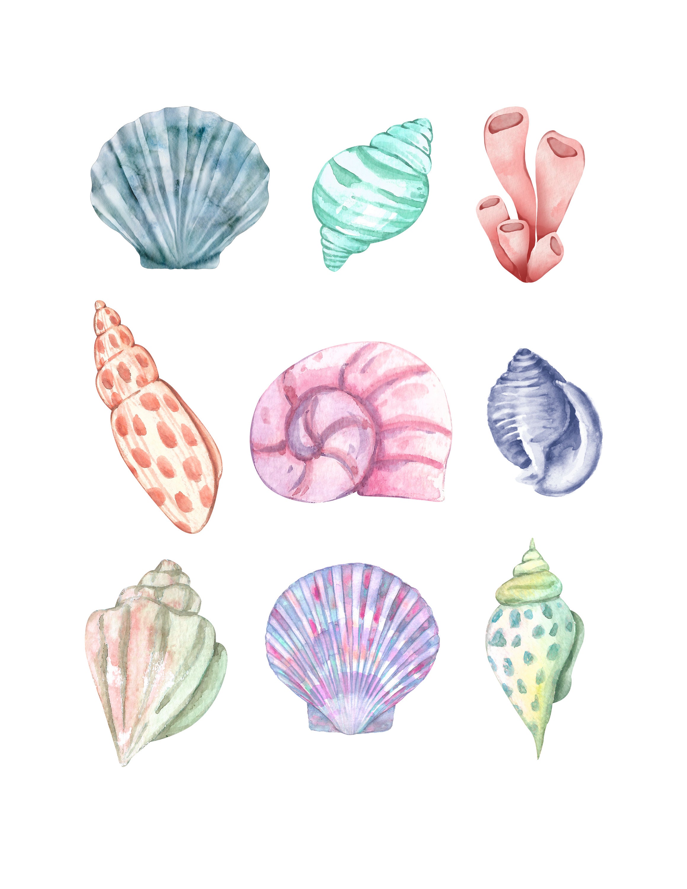 Watercolor Shell Print Watercolor Shell Instant Download Shell | Etsy ...