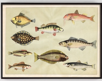 Sea Life Print, Shellfish Print, Nautical Beach House Wall Art, Coastal ...