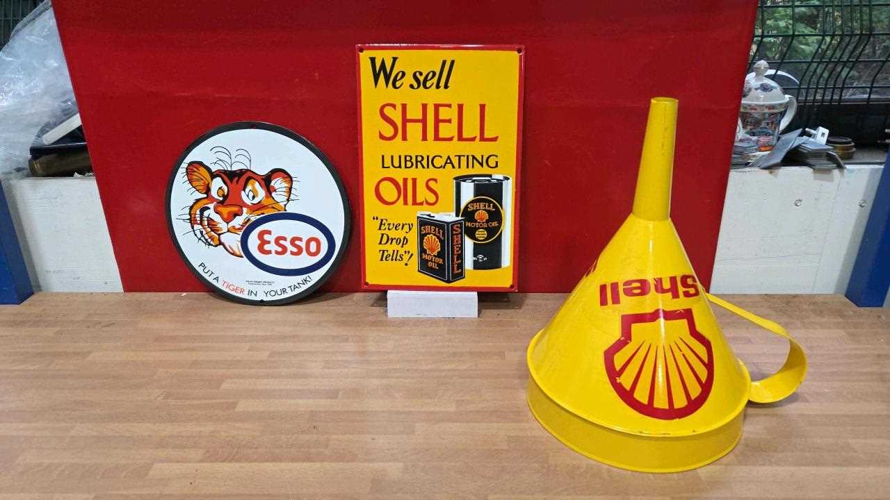 Lot 295 - 2 ENAMEL SIGNS + SHELL FUNNEL, SHELL OIL