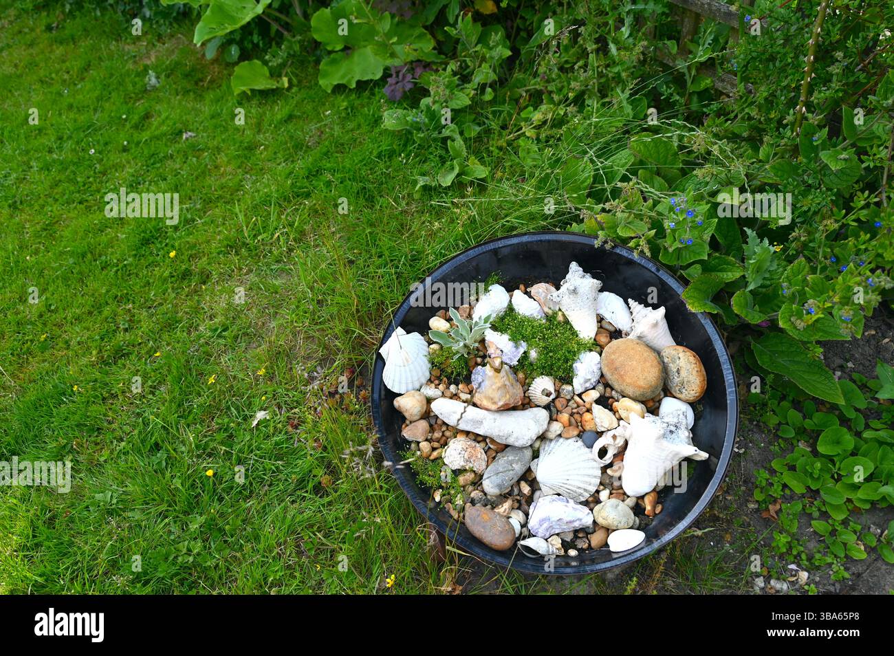 Garden decor with natural pebbles and shells Stock Photo - Alamy