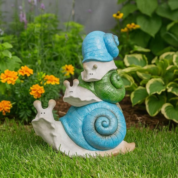 Liv & Skye 14 in. x 15 in. Ivory Resin Stacked Snails with Colored ...