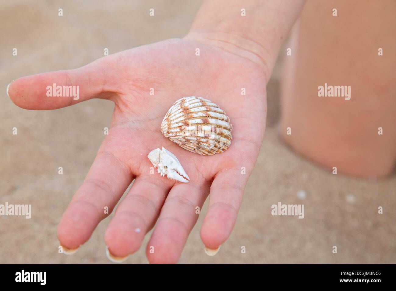 daytime hand with shell and crab claw Stock Photo - Alamy