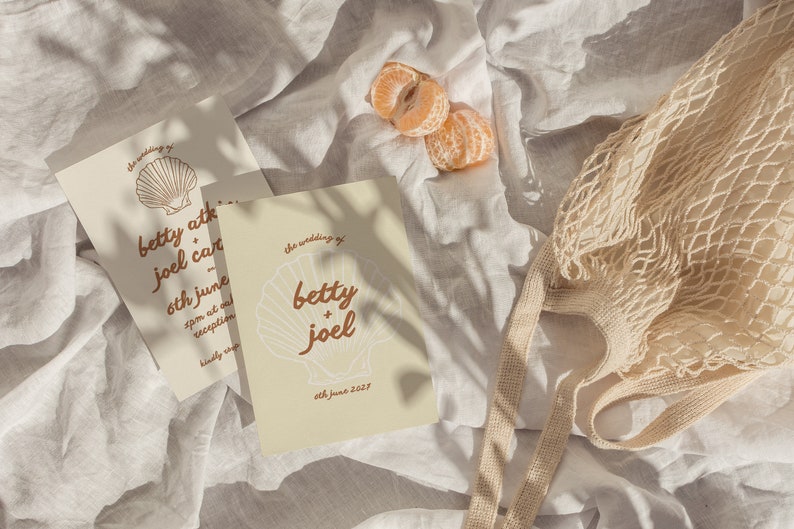 Editable Sea Shell Wedding Invitation Set, Printable Wedding Invite ...