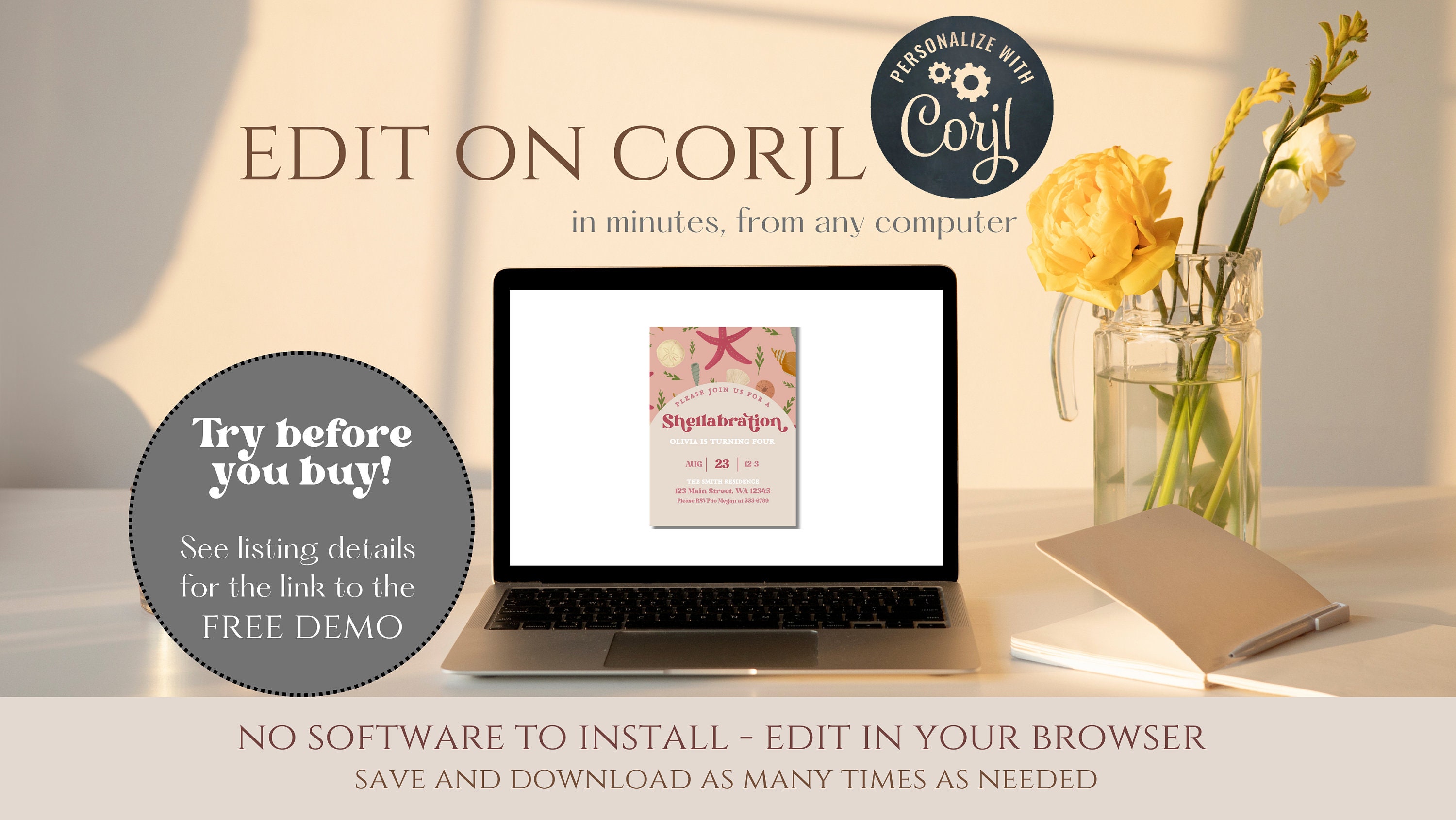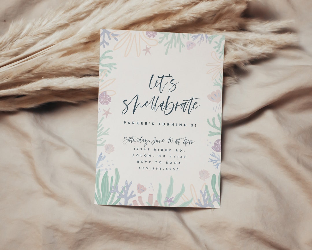 Sea Shell Invitation, Shellebrate Birthday Invite, Digital Download ...