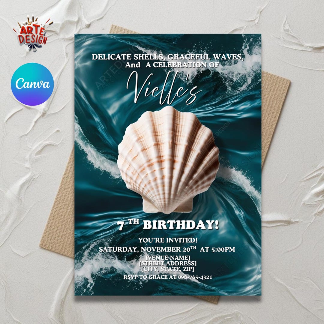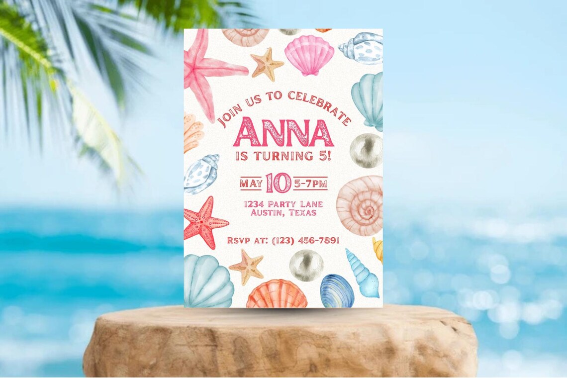 Shells Theme Birthday Editable Template Invitation - Etsy
