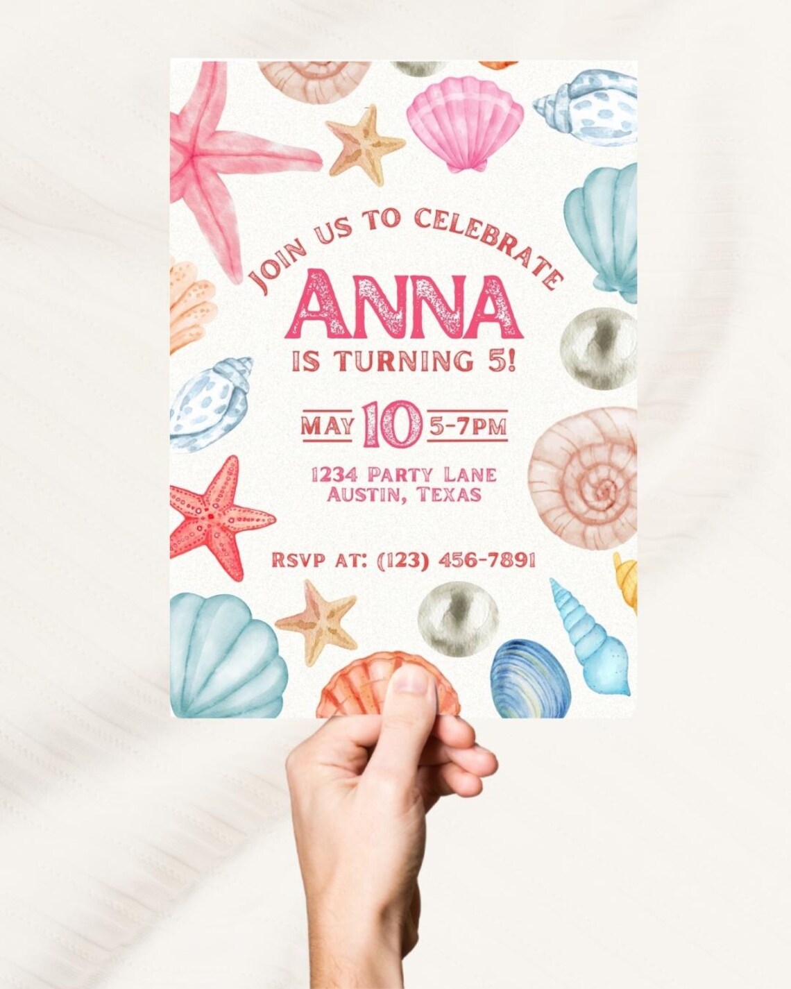 Shellebrate Birthday Invitation, Sea Shell Invitation, Pink Beach ...