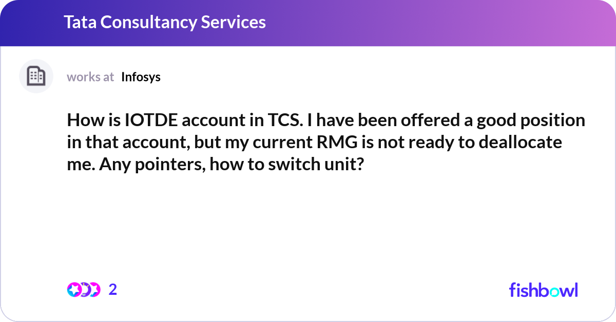 How is IOTDE account in TCS. I have been offered a... | Fishbowl
