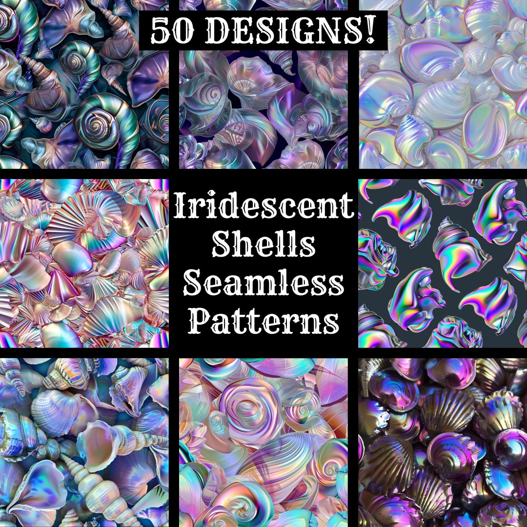 Iridescent Shells Seamless Patterns: Digital Paper (PNG, 300 Dpi) - Etsy