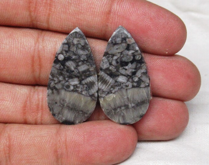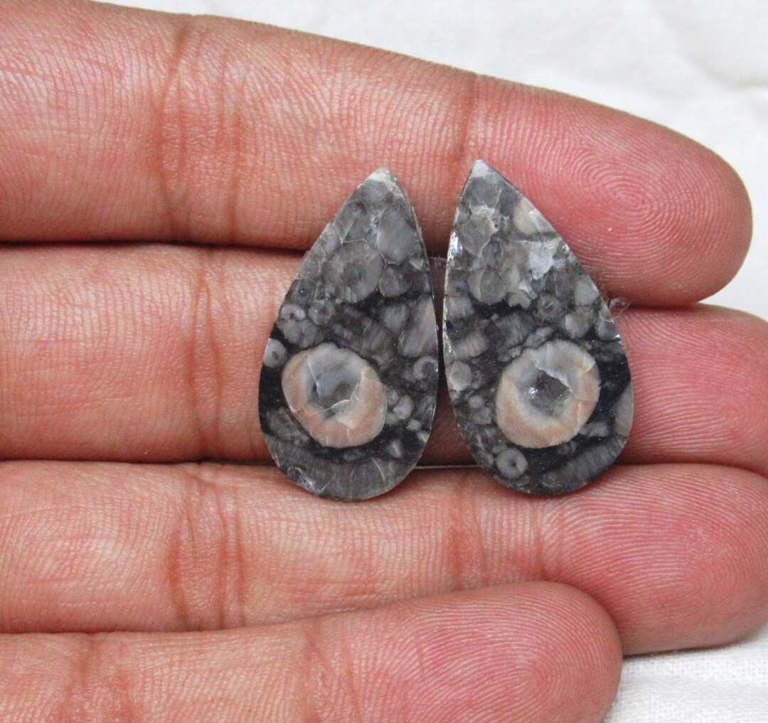 Fossil Shell, Jasper Gemstone, Fossil Shell Jasper, Cabochon Pair ...