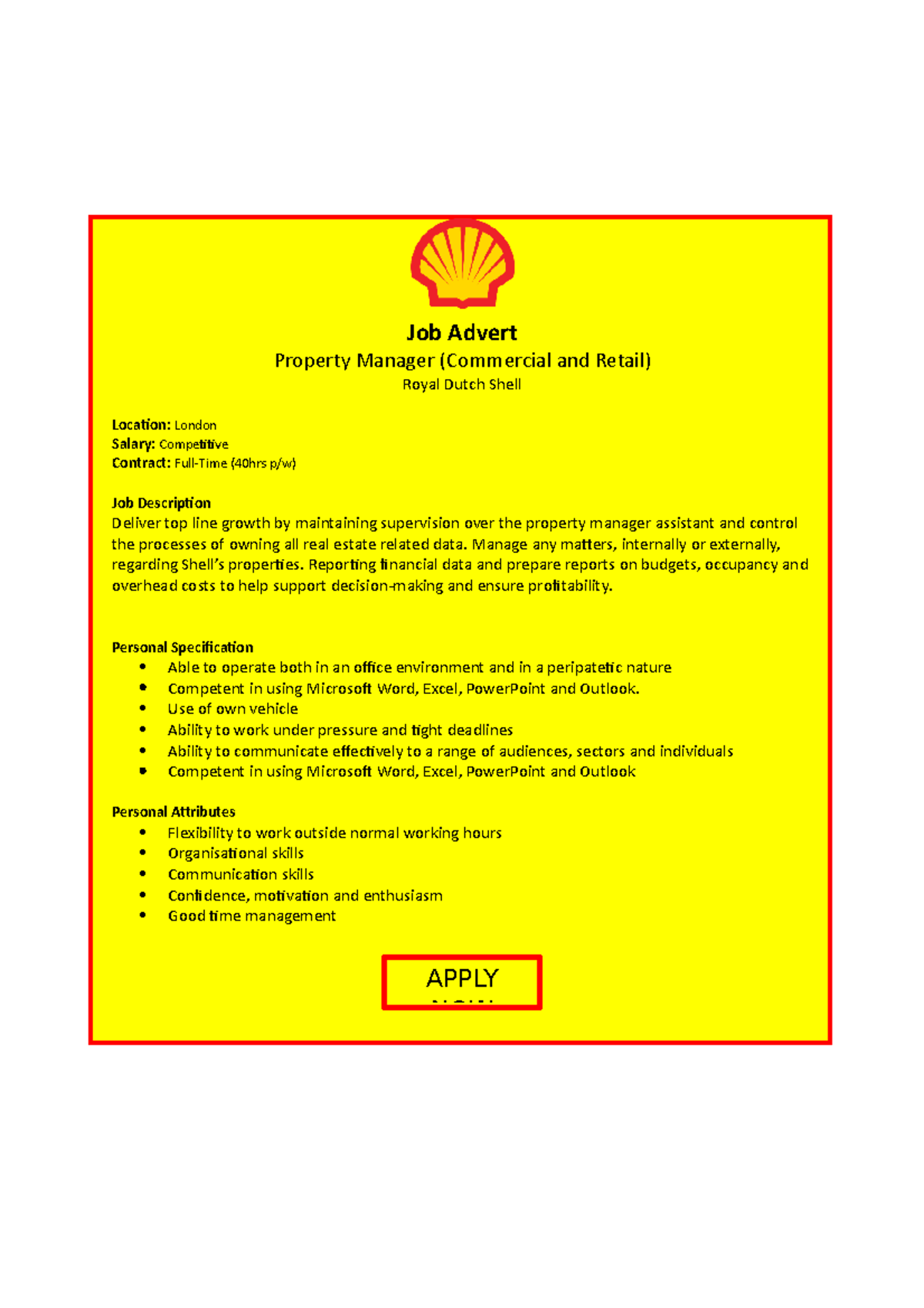 Job Advert - Job Advert Property Manager (Commercial and Retail) Royal ...