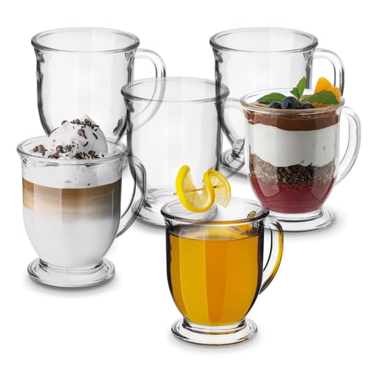 Zestaw kubków 6x DUŻY KUBEK SZKLANY do herbaty 450 ml Z UCHEM do ...
