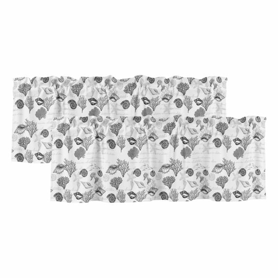 Coastal Grey Valances for Windows, Retro Ocean Coral Shell Starfish ...