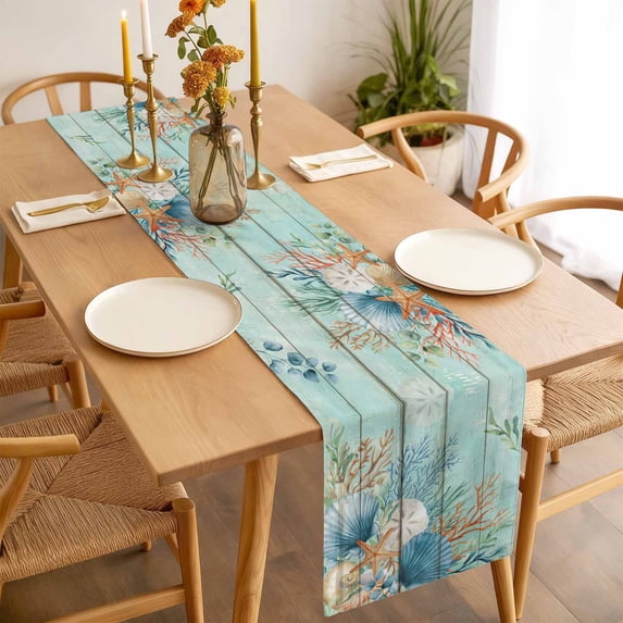 Coastal Ocean Shell Coral Starfish Table Runner 90 Inches Long,Kitchen ...