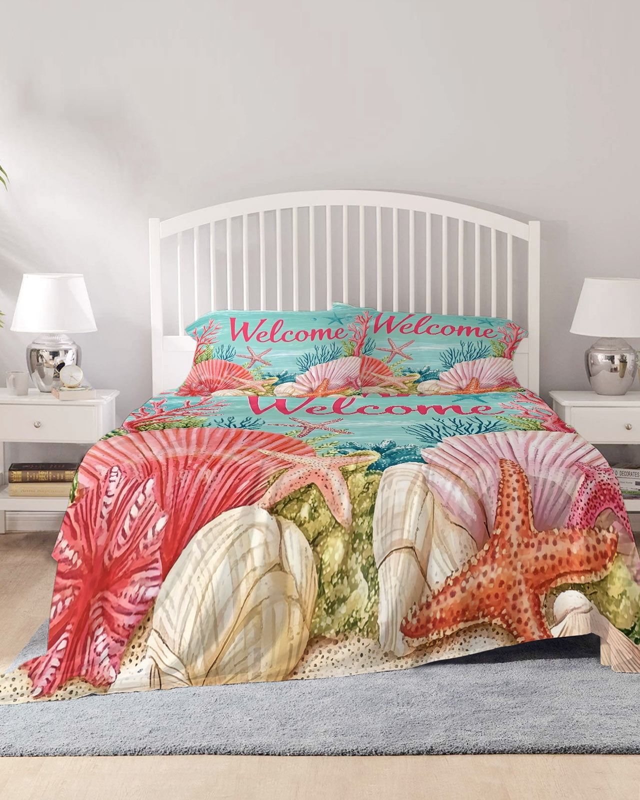 4 Piece Queen Sheet Set Turquoise Coastal Welcome Sheets Set for Queen ...