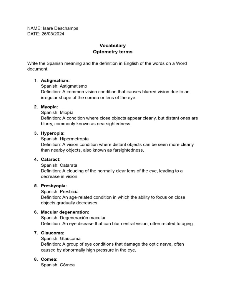 Vocabulary Optometry Terms | PDF | Eye | Myopia