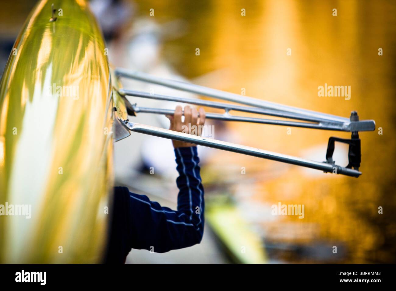 A young man carries a rowing shell over his head Stock Photo - Alamy