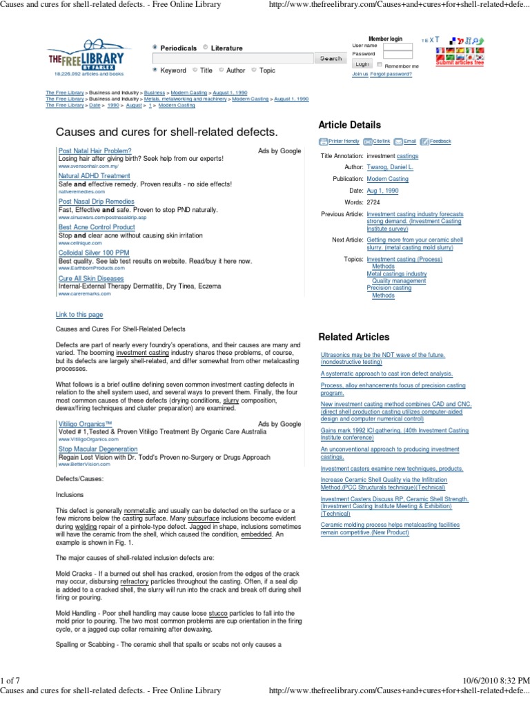 Causes and Cures For Shell-Crack | PDF | Casting (Metalworking ...
