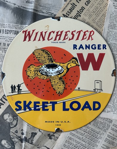 VINTAGE 1949 WINCHESTER SKEET SHOTGUN SHELLS 12 INCH PORCELAIN ENAMEL ...