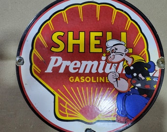 Shell Premium Gasoline with Popeye Porcelain Enamel Sign (12in ...