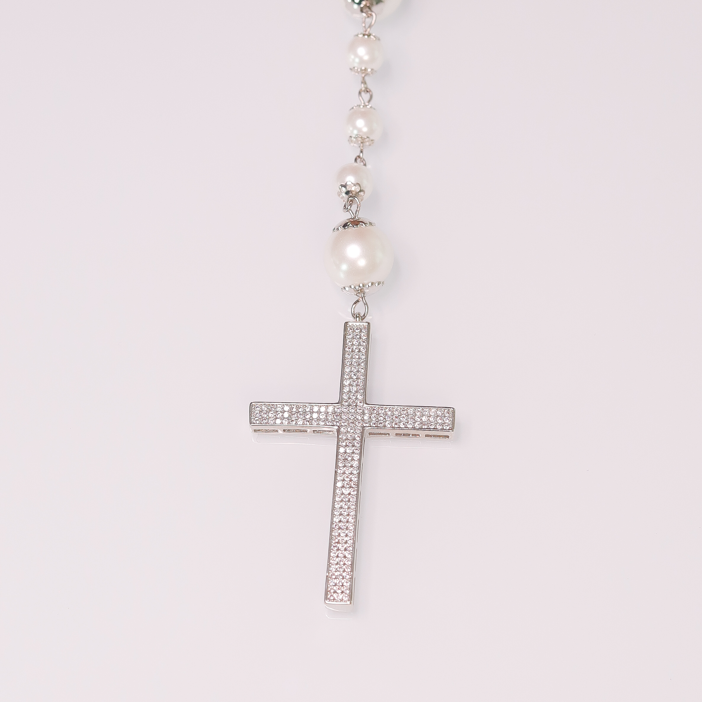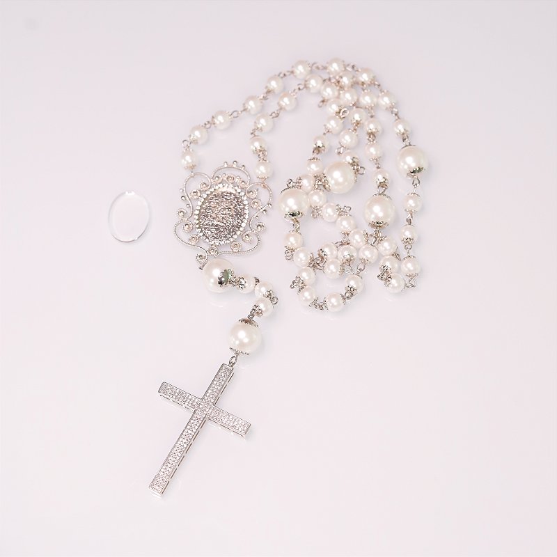 Terço Pérola Shell Relicário com Vidro - Santíssima Arte Sacra
