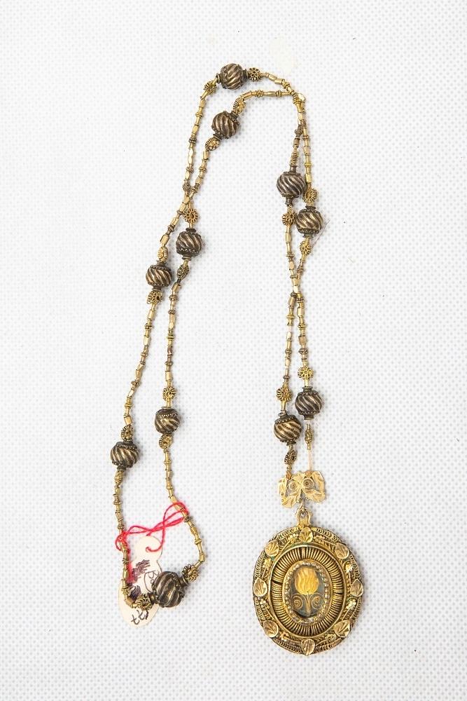Relicario de latón macizo con base ornamentada y abalorio tachonadas ...
