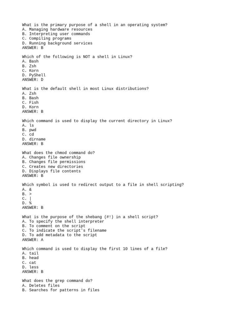 Master Shell Scripting: Quiz and Practical Exercises | Course Hero