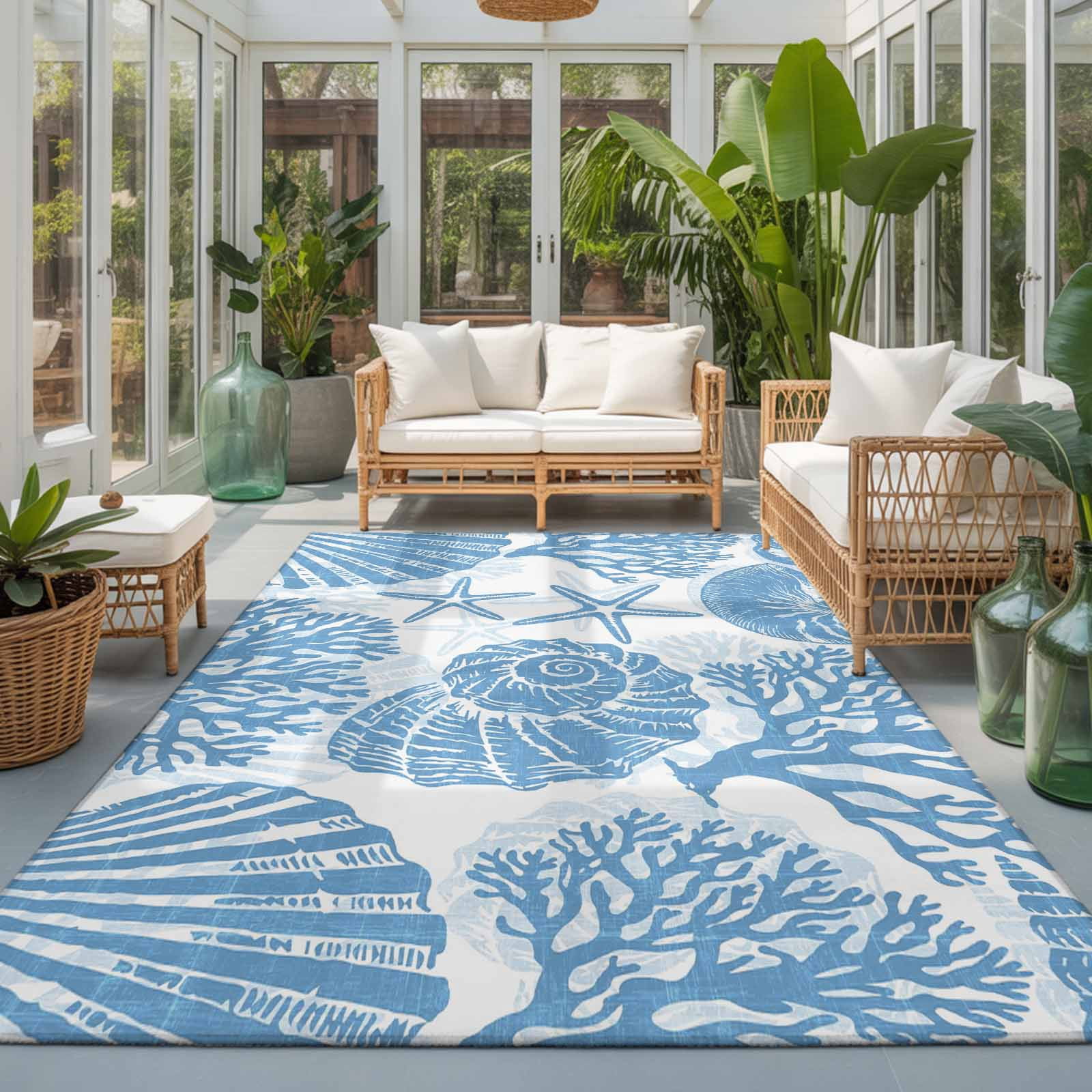 Area Rugs for Living Room 4x6 Ft, Blue Coastal Non Slip Area Rugs for ...