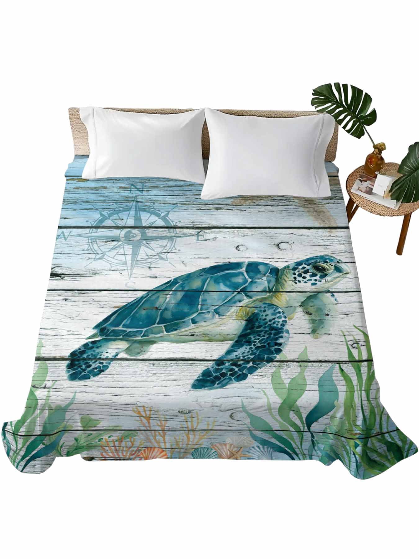 Coastal Turtle Flat Sheets Only King Size, Soft Breathable Bed Top ...