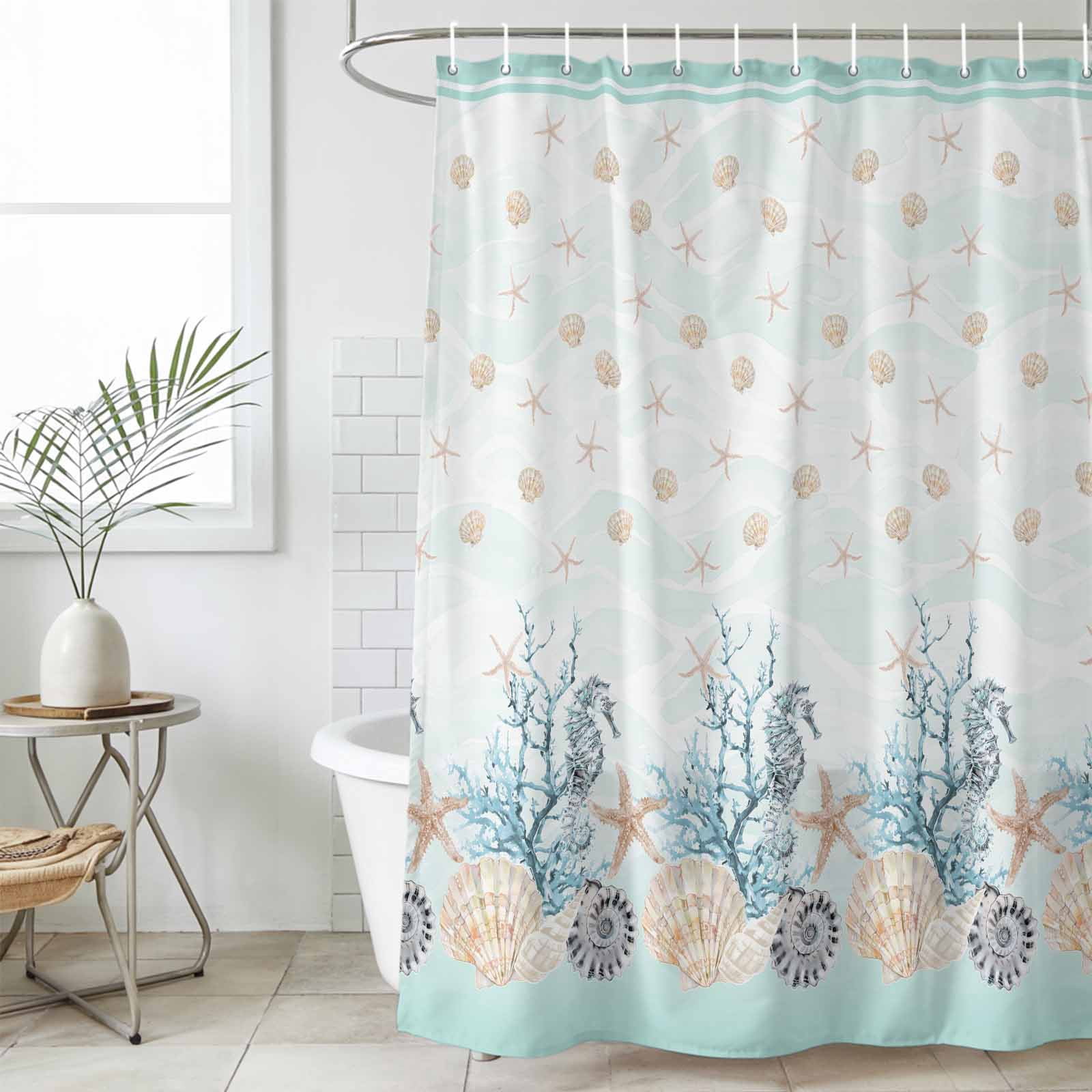 Aqua Coastal Shell Small Stall Shower Curtain, Waterproof Shower ...