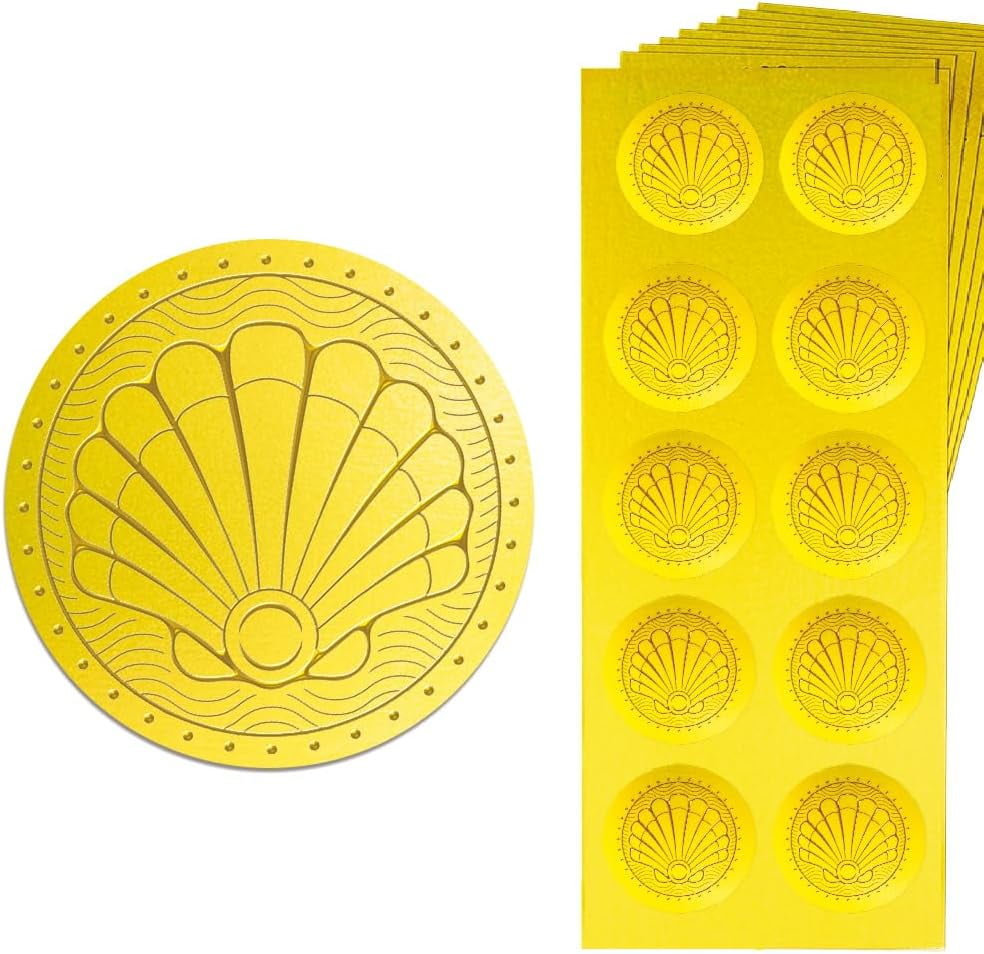 Gold Embossed Sticker Seal Shell 1.4 Inch 150Pcs Self Adhesive Golden ...