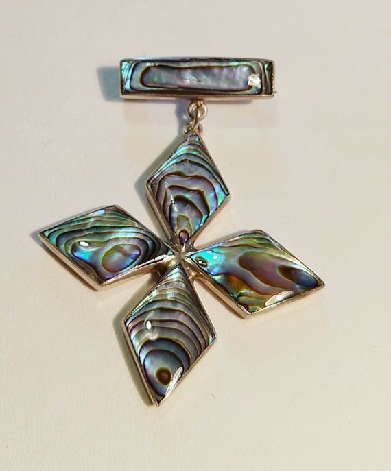Vintage Artisan Sterling Abalone Paua Shell Stylized … - Gem