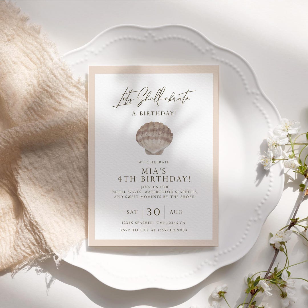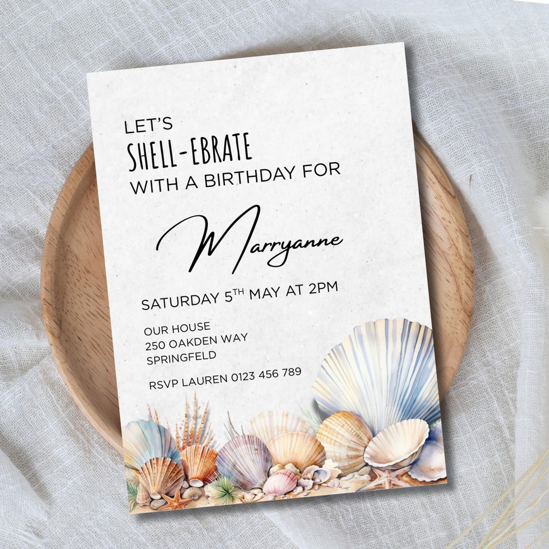 Sea Shell Beach Birthday Invite, Shellabration Invitation, Shell ...