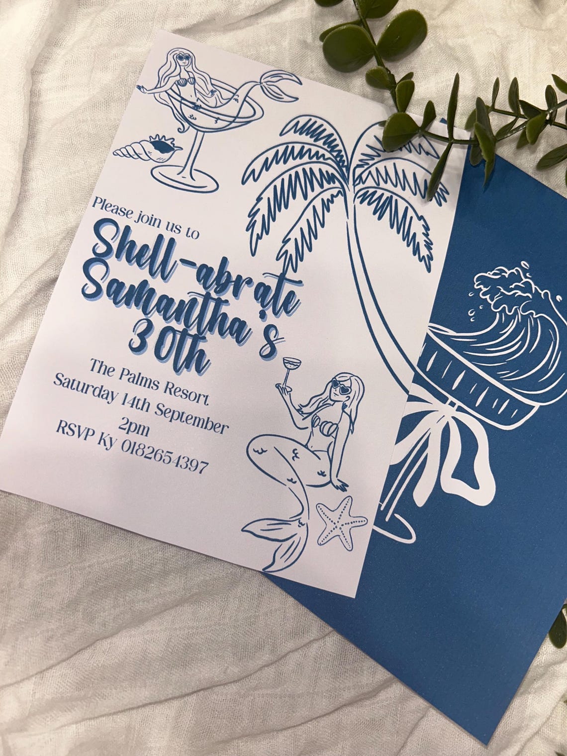 Shell-abrate Birthday Invitation Blue Tropical Beach Theme Ladies ...