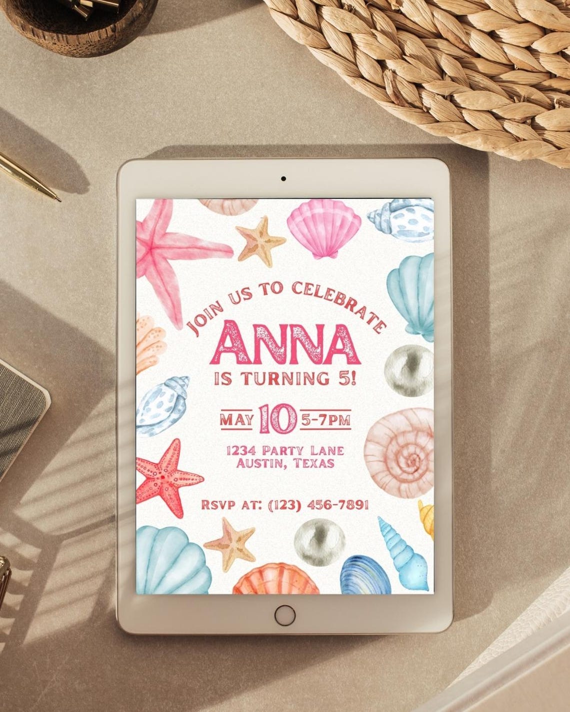 Editable Girl Sea Shell Birthday Party Mobile Invitation Template, Let ...