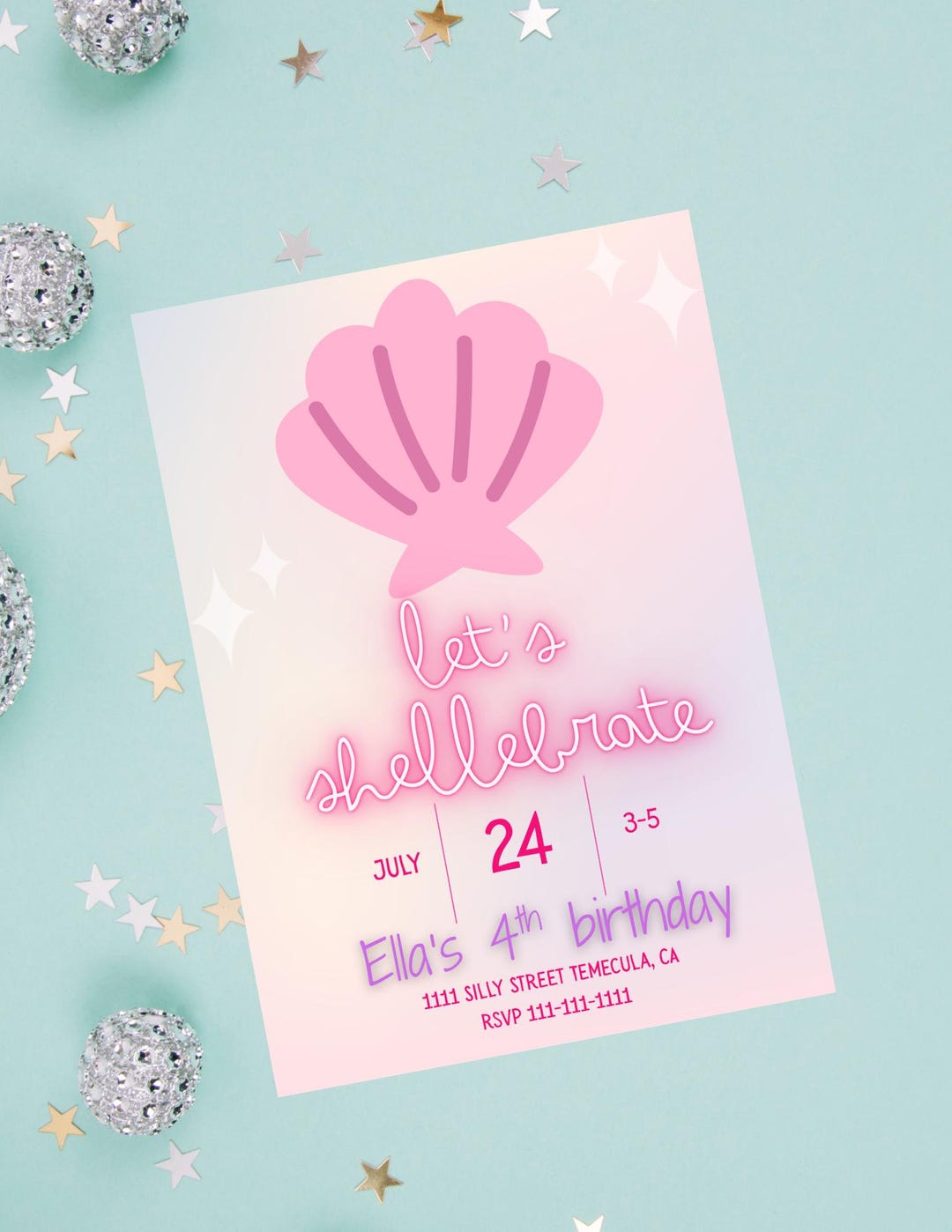 Editable Let's Shellebrate Birthday Invitation – Personalized Mermaid ...