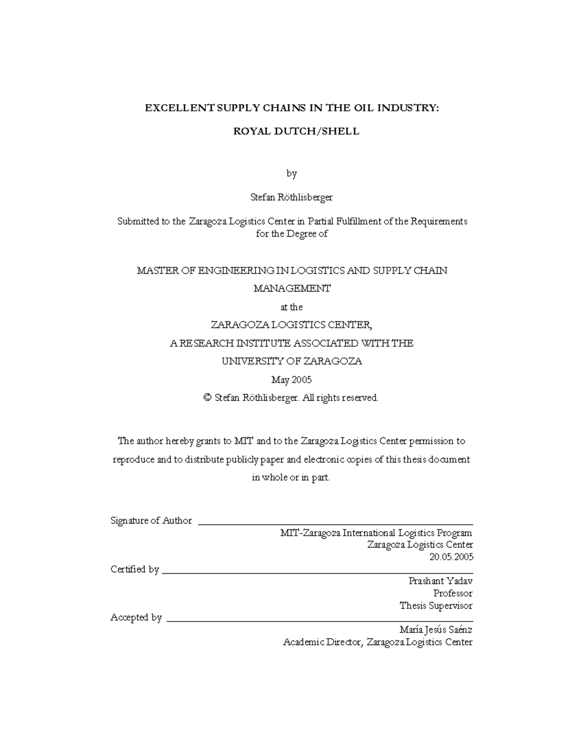 SC2020 Thesis Shell - learning Material - EXCELLENT SUPPLY CHAINS IN ...