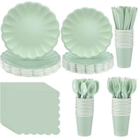 350 Pcs Light Green Scalloped Paper Plates Shell Edge Disposable ...