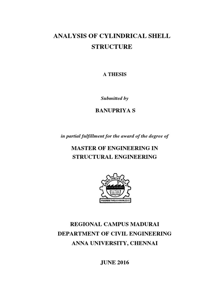 Analysis of Cylindrical Shell Structure: Banupriya S | PDF | Thesis ...