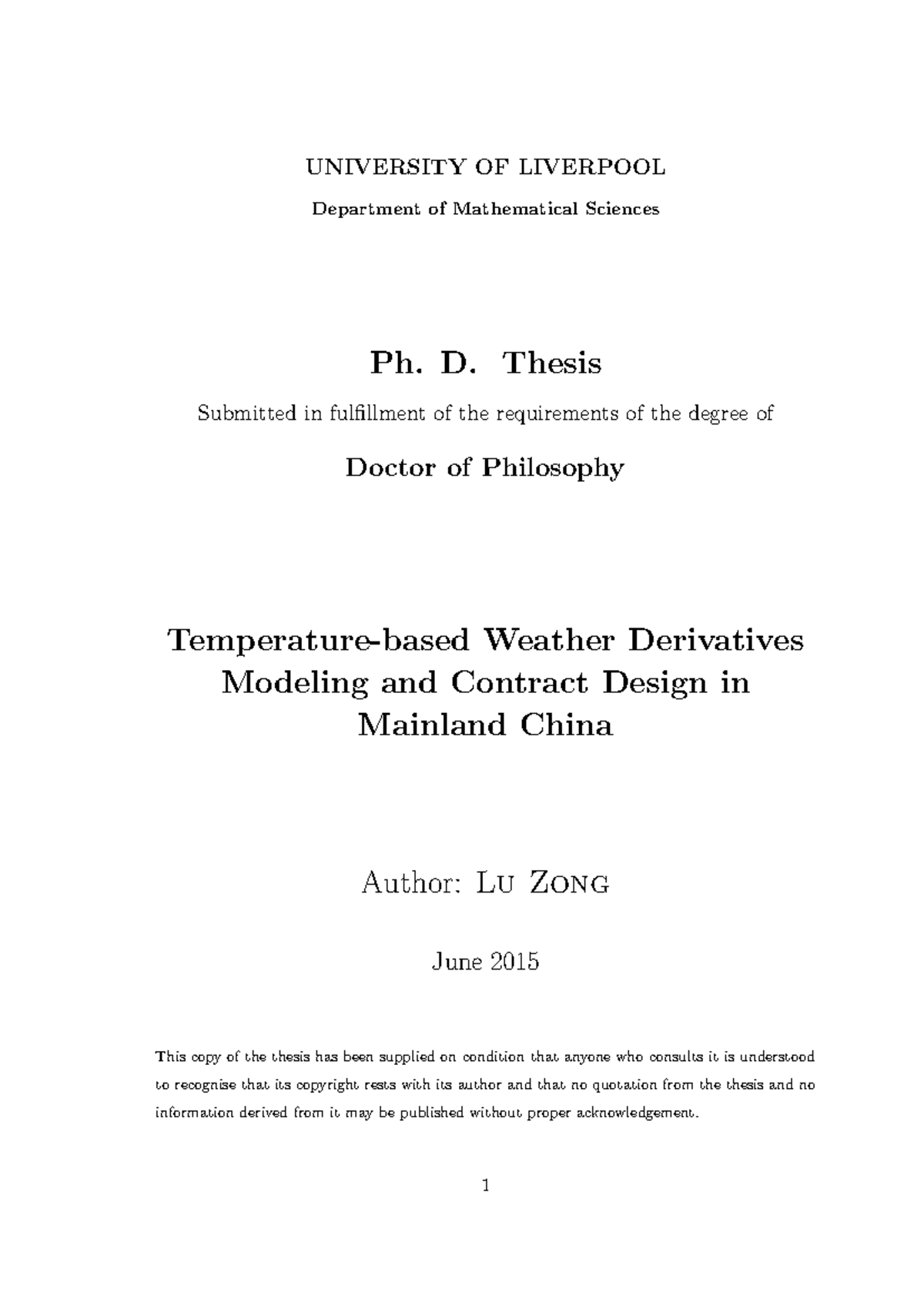PhD Thesis: Weather Derivatives Modeling & Contract Design in China ...