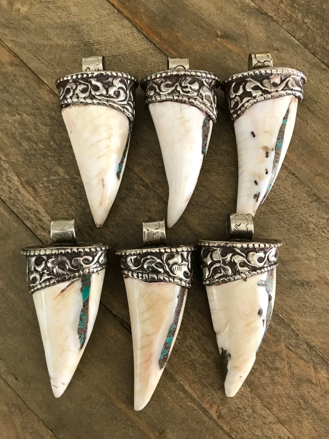Large Shell Tooth Pendant, Handcrafted, Nepalese, Tibetan Repousse ...